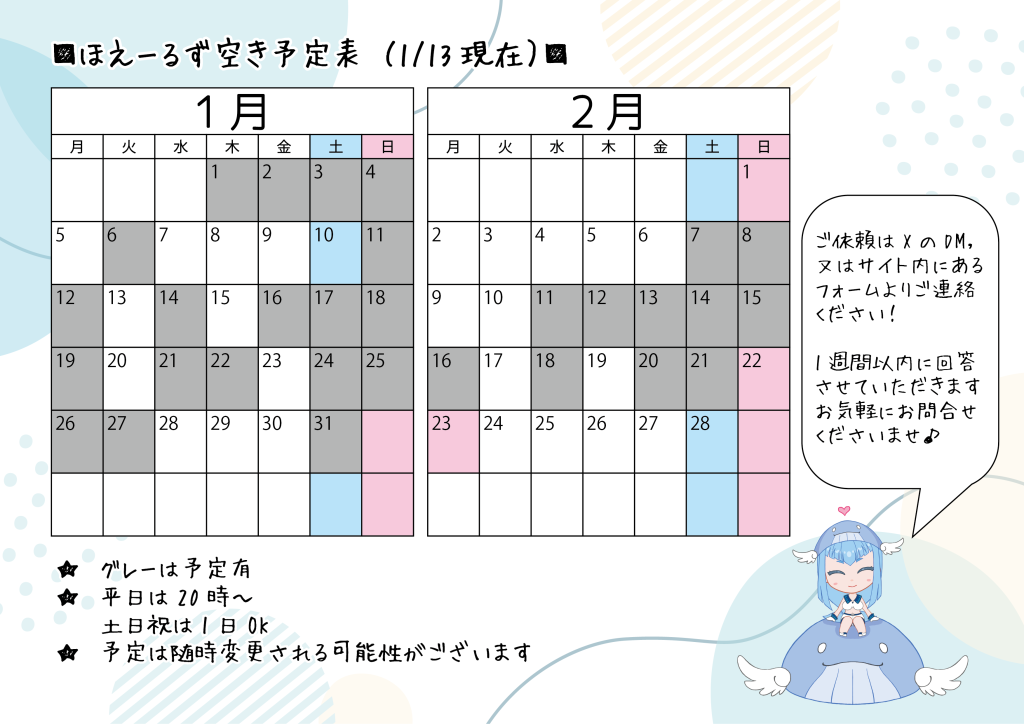 GMをご依頼いただけるスケジュール表となります。ご依頼の際のご参考になれば幸いです。